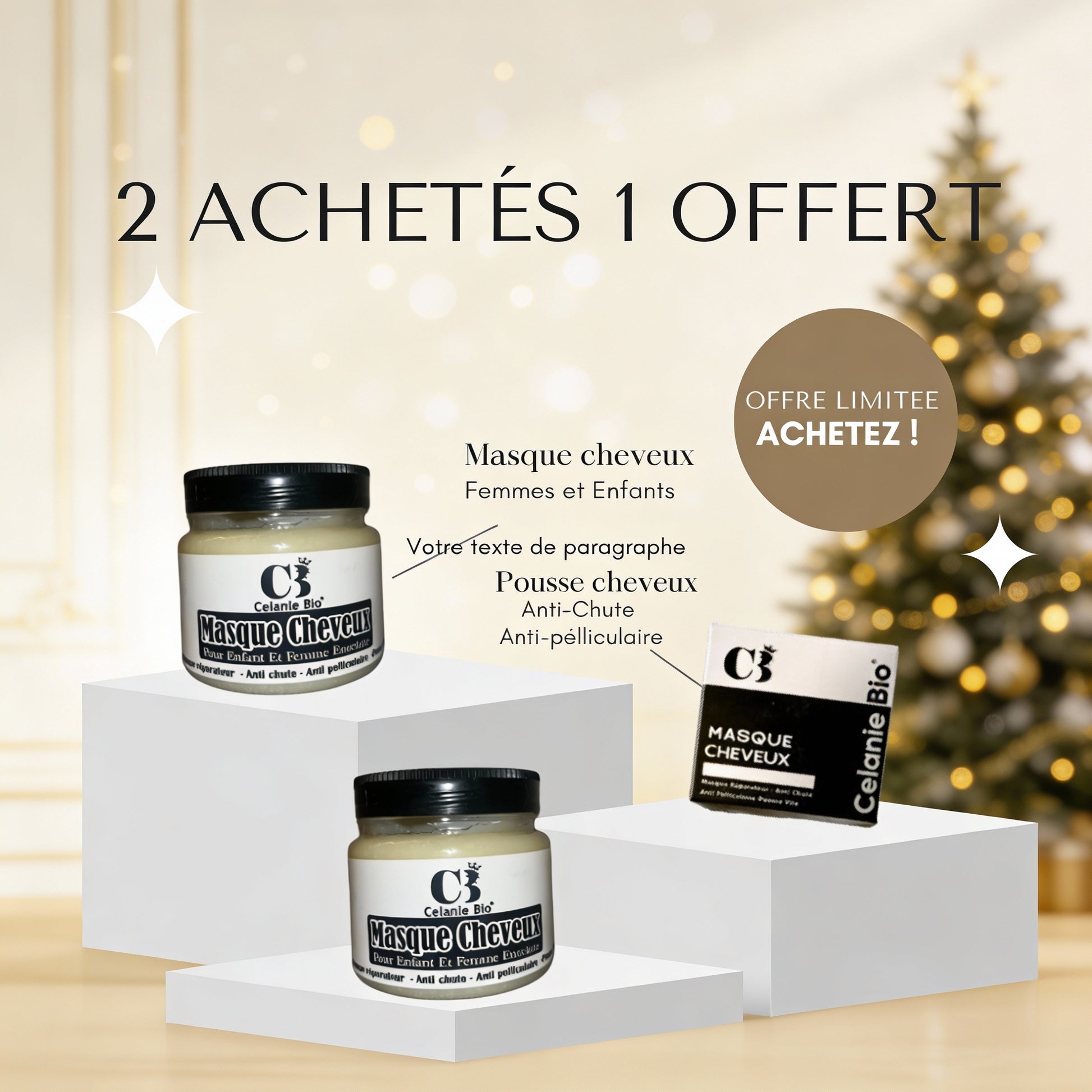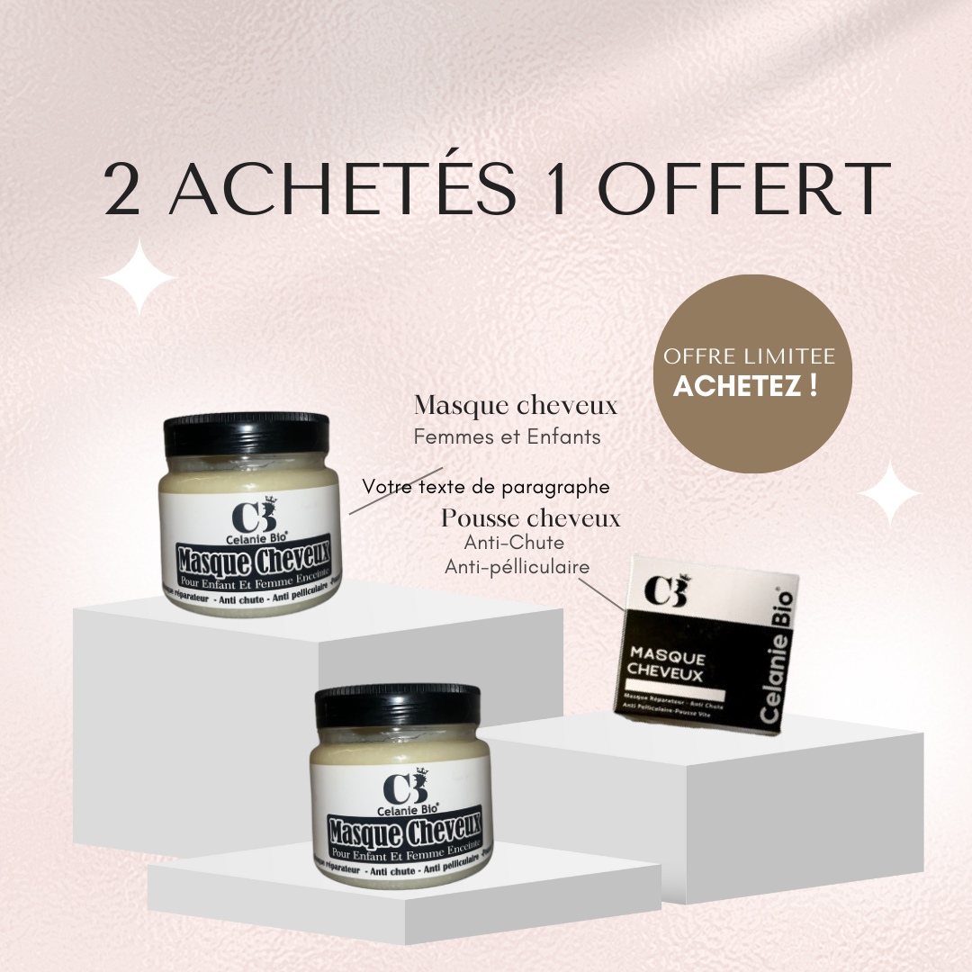 2 Achetés 1 offert Masque Cheveux Femmes et enfants